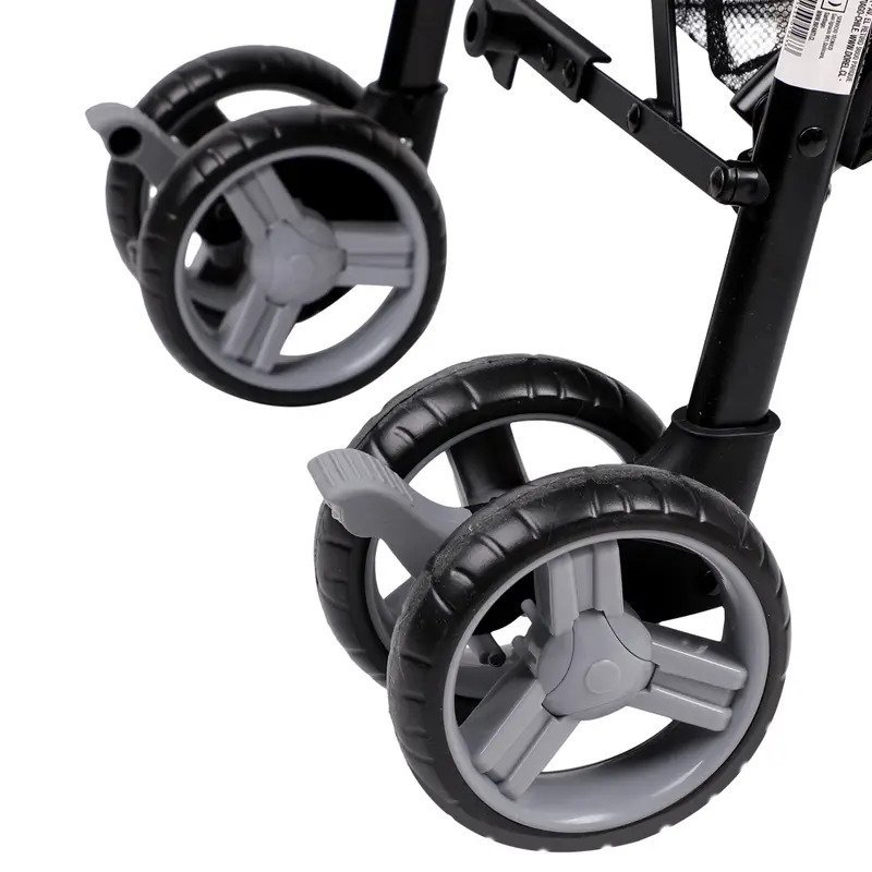 Este coche también cuenta con manijas fijas, 8 ruedas con frenos traseros, y una práctica ventanilla trasera que te permitirá ver a tu pequeño mientras disfruta del paisaje.