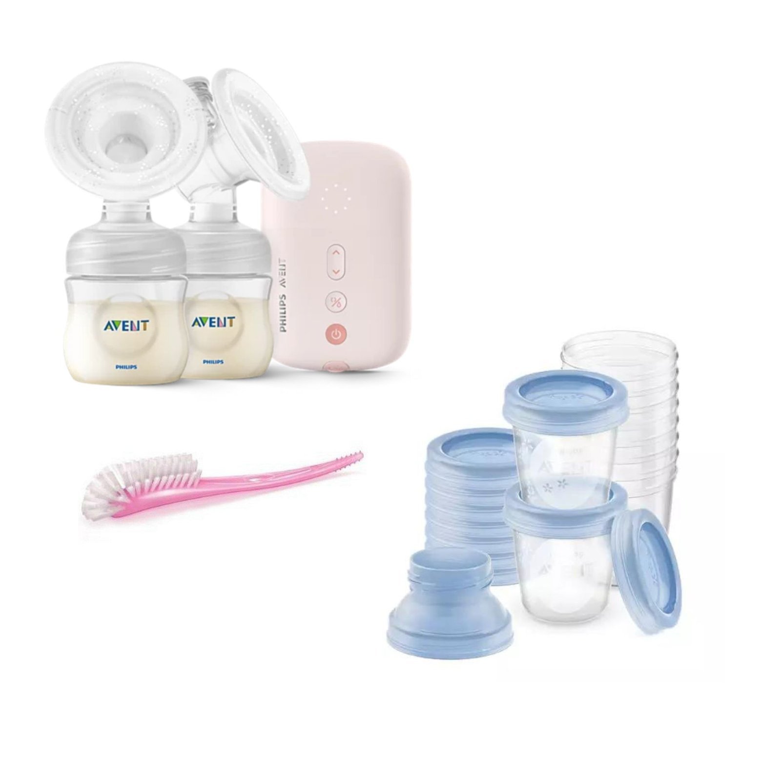 Extractor mamario doble + 10 vasos de almacenamiento y cepillo Higienizador