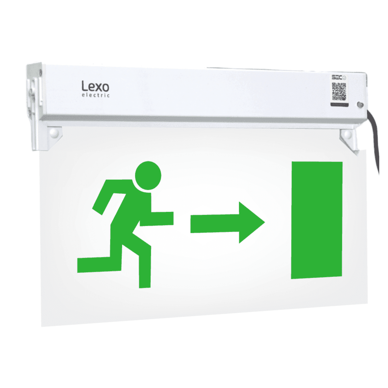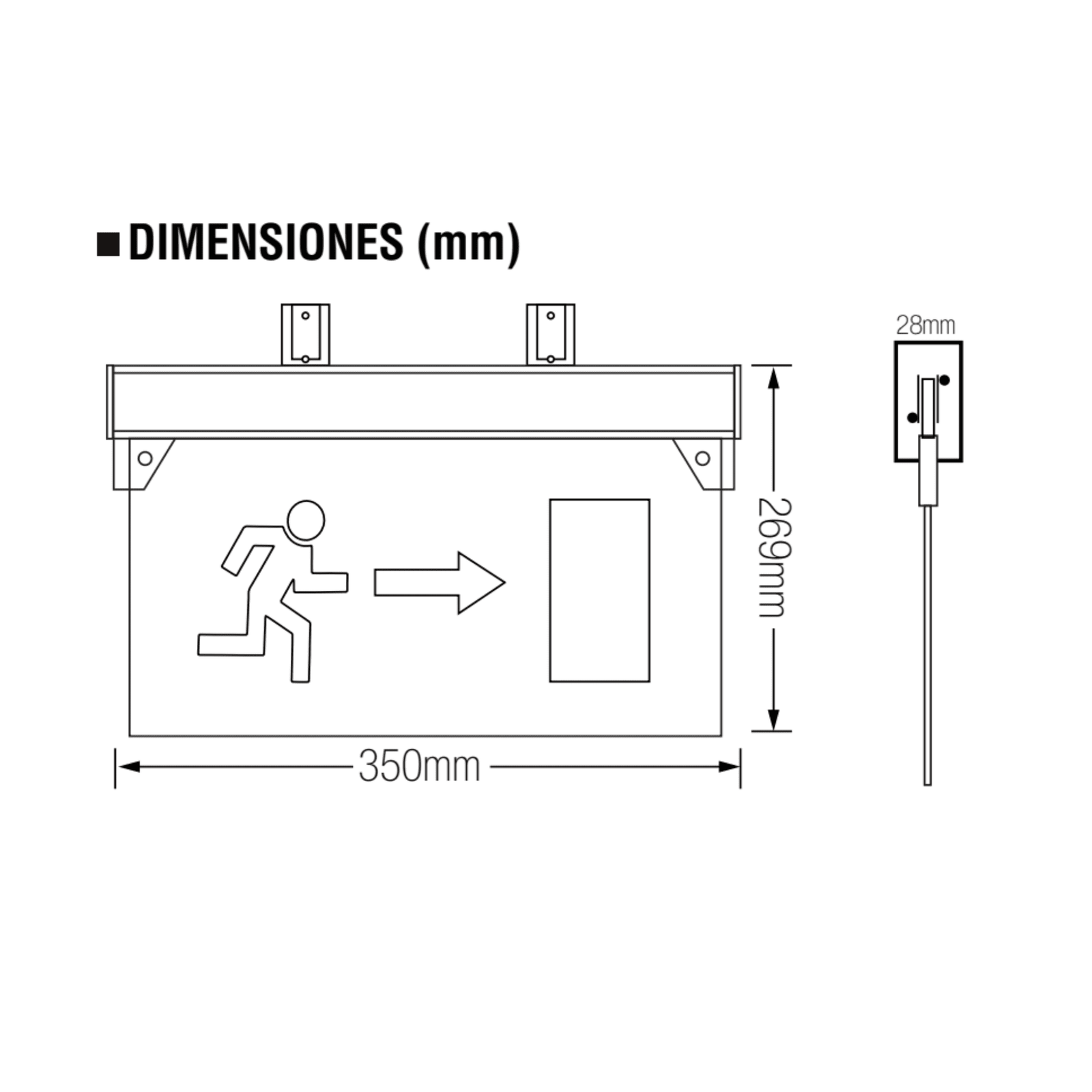 Banderola de señalización emergencia LED, entrega luz de forma permanente iluminando la señalética en todo momento, ante un corte de energía, su metacrilato traslúcido con serigrafía ¨SALIDA¨ ofrece una comunicación visual que permite guiar, orientar u organizar a las personas, ante cortes de energía.
