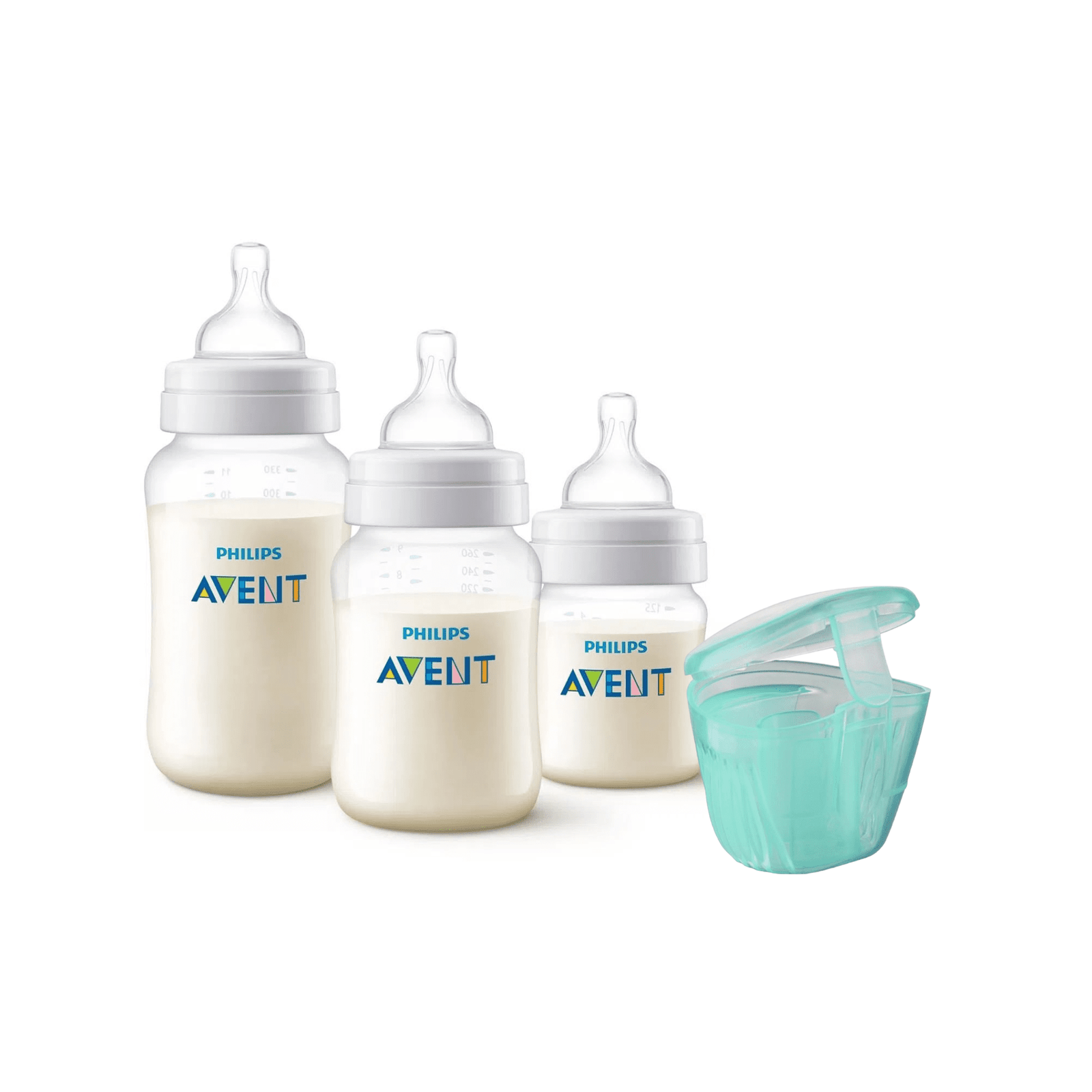 - Flujo adecuado para cada etapa: Incluye mamaderas de 125 ml, 260 ml y 330 ml con tetinas de flujo para recién nacido, flujo medio y flujo rápido, respectivamente.