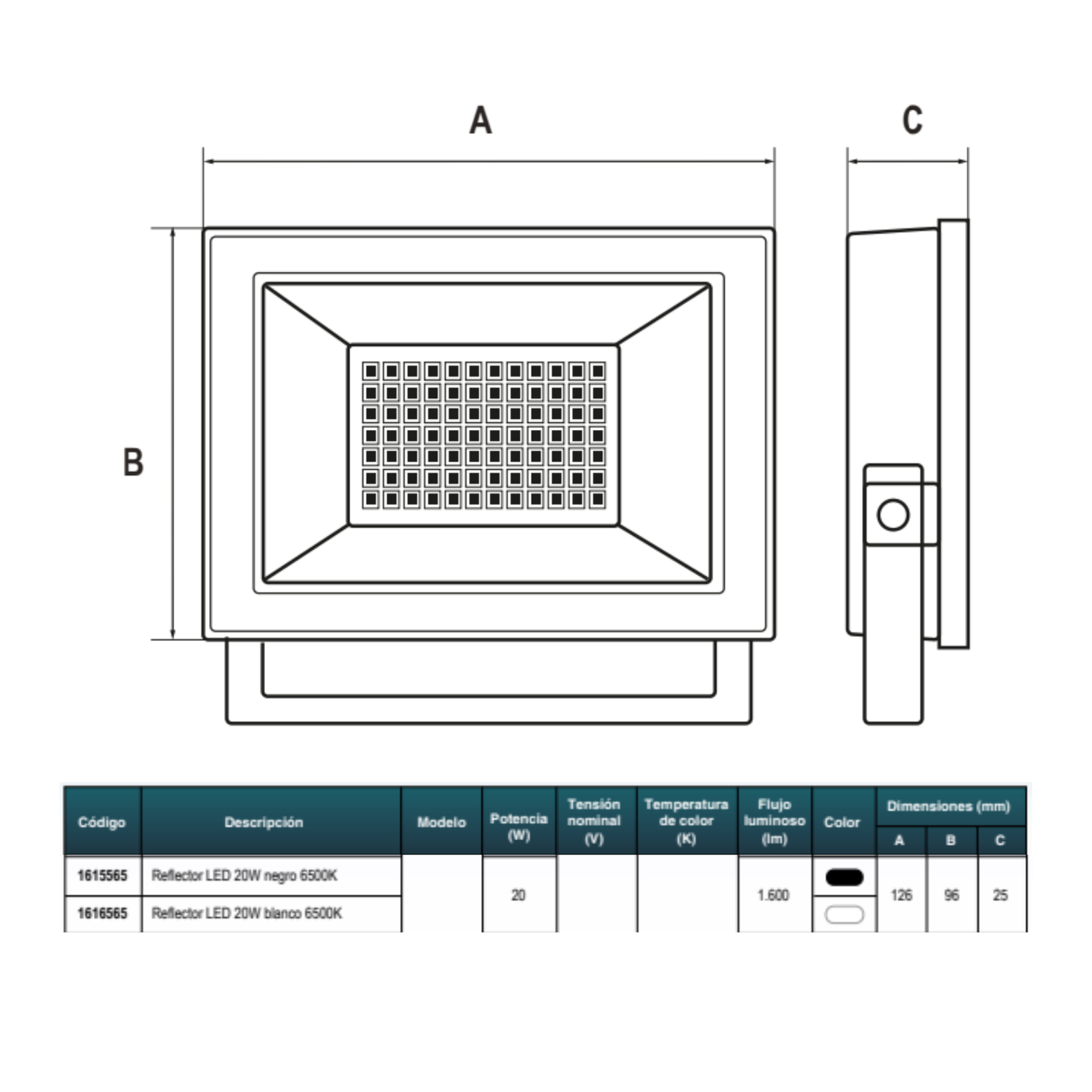 Reflector LED orientado a la eficiencia energética. De encendido instantáneo. No requiere mantenimiento. Con carcaza impermeable, ideal para ser utilizado en ambientes adversos. Diseño compacto. Cuenta con una profundidad reducida. Incorpora un radiador que garantiza una óptima disipación de calor evitando la pérdida de potencia de la luz. LED de alto brillo que aumenta su rendimiento. Se adapta a cualquier instalación interior y exterior. ESPECIFICACIONES • Estándar: IEC 60598 • Tipo de LED: SMD2835 • Indice de protección: IP65 • Grado de resistencia al golpe: IK08 • Clase: I • Angulo del haz: 120° • Eficiencia lumínica: 80 (lm/W) • Indice de Reproducción Cromática (CRI): 70 • Factor de potencia: >0.90 • Temperatura de trabajo: -40°C a +50°C • Frecuencia: 50Hz • Dimerizable: NO • Vida útil: 25.000 horas CARACTERÍSTICAS • Reflector con cuerpo de aluminio termo esmaltado de alta resistencia • Vidrio templado transparente • Diseño compacto • Fácil de instalar y transportar • Barra omega ensanchada y engrosada, fija el reflector de forma firme y confiable al lugar de instalación • Instalación a cielo, a muro, a piso APLICACIONES • Uso interior y exterior. • Iluminación de áreas verdes, fachadas, iluminación perimetral, estacionamientos, etc.